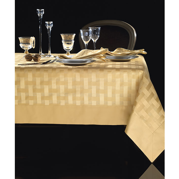 La tovaglia Intreccio è un’espressione sublime di raffinatezza. La sua superficie morbida e setosa cattura la luce, donando alla tua tavola un aspetto lussuoso e senza tempo. Ogni filo è scelto con cura per garantire una qualità superiore e una consistenza che incarna l’eleganza in ogni dettaglio. La lavorazione Jacquard arricchisce il tessuto con una trama incrociata ed elegante che esalta la bellezza di ogni elemento.