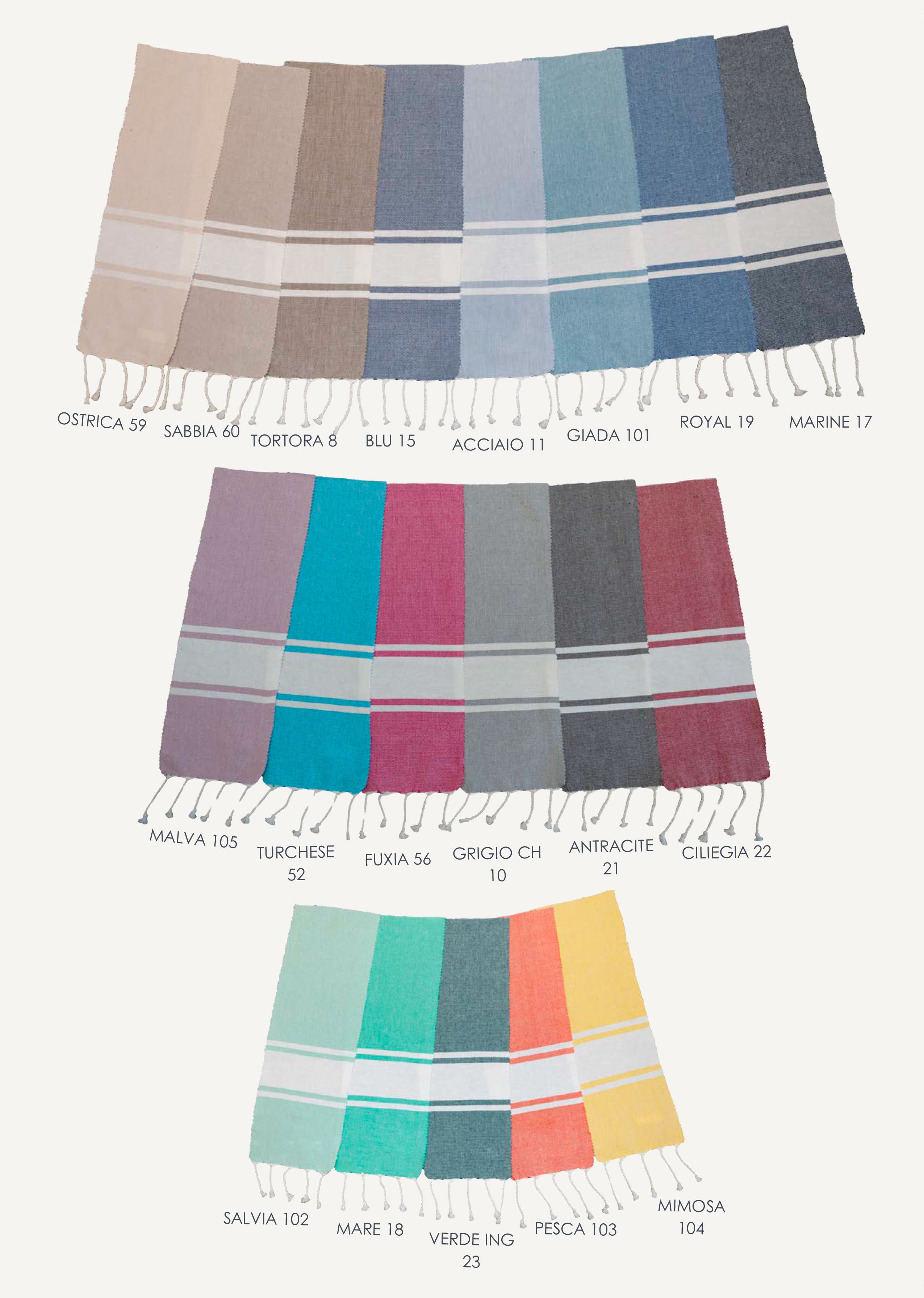 Telo mare in 100% cotone tinto filo, dimensioni 100x200 cm, rifinito con frange annodate a mano per un tocco di stile naturale e artigianale. Leggero, pratico e salvaspazio, è ideale per la spiaggia, la piscina o la barca.