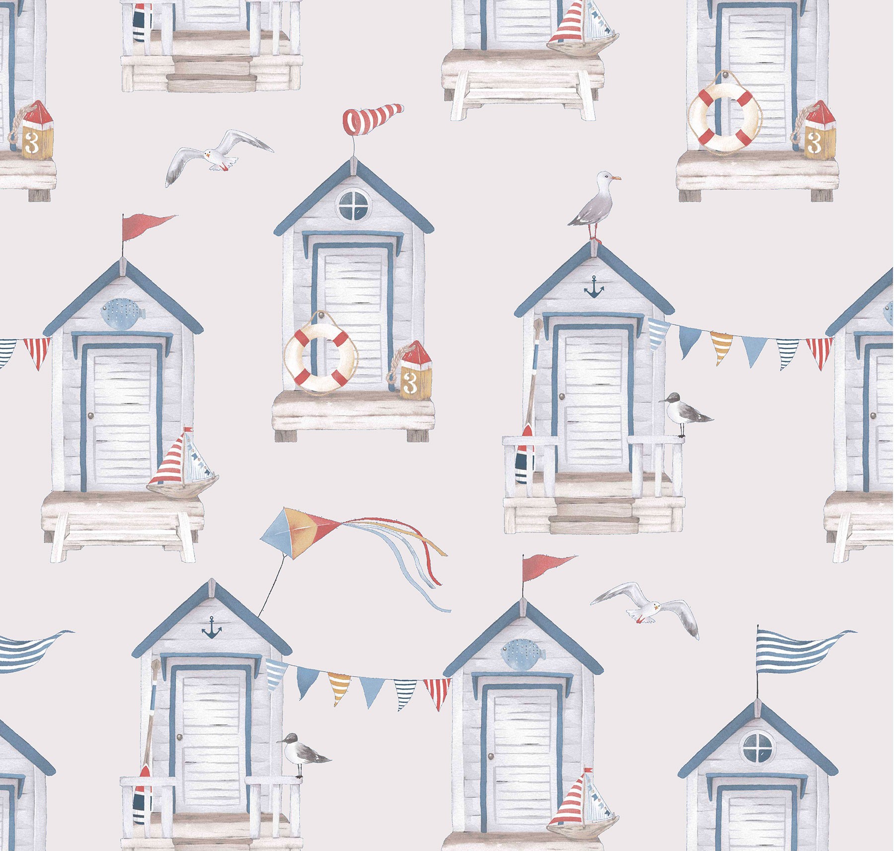 Telo mare Costa Azzurra, realizzato in 100% cotone con lato in spugna assorbente e lato esterno in tessuto fouta stampato. Il disegno raffigura iconiche cabine balneari in stile marinaro, simbolo di vacanze spensierate e atmosfere retrò di eleganza estiva.