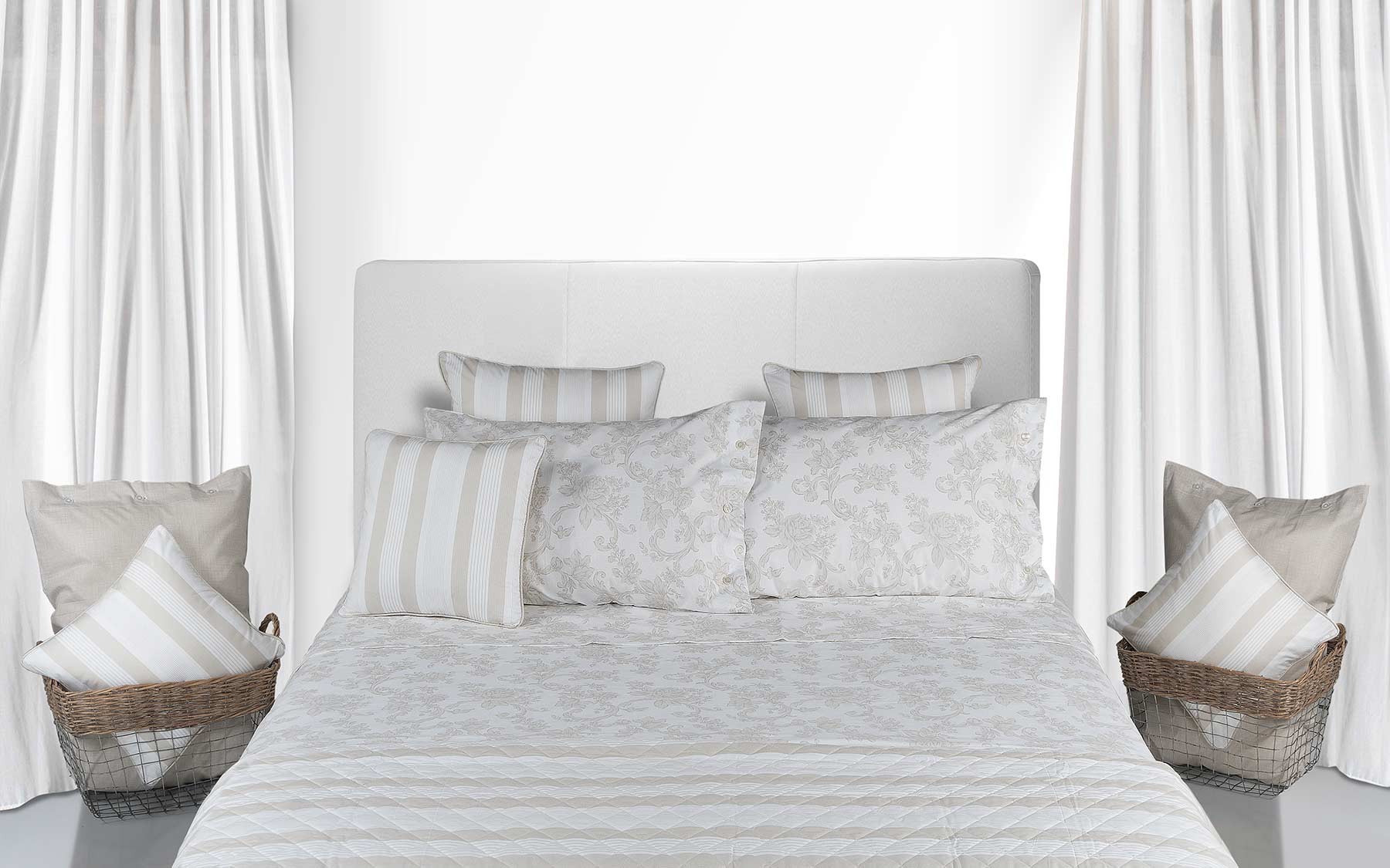 Il completo letto Lumière incarna la bellezza della semplicità, arricchita da dettagli unici e ricercati. Realizzato in puro cotone, offre una morbidezza naturale che accompagna il tuo riposo. Le federe, impreziosite da eleganti bottoni in madreperla su una raffinata balza laterale, aggiungono un tocco di classe discreta. Le fantasie proposte combinano sobrietà e stile, per adattarsi armoniosamente a ogni camera da letto.