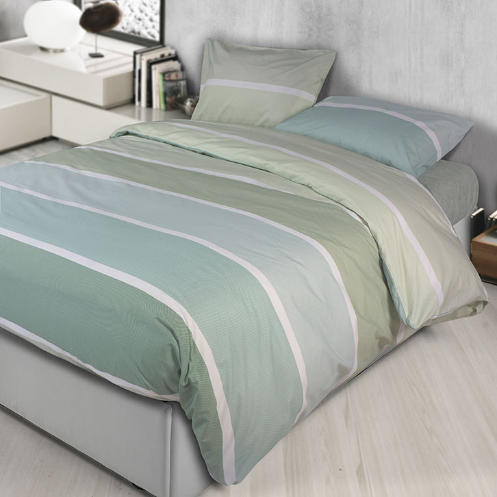 La parure copripiumino Palette combina praticità e stile in un design dalle righe eleganti, declinate in tonalità armoniose. Realizzato in puro cotone, offre comfort e traspirabilità per un riposo ideale. La stampa su entrambi i lati permette di avere sempre un letto perfetto, regalando versatilità al tuo arredamento.